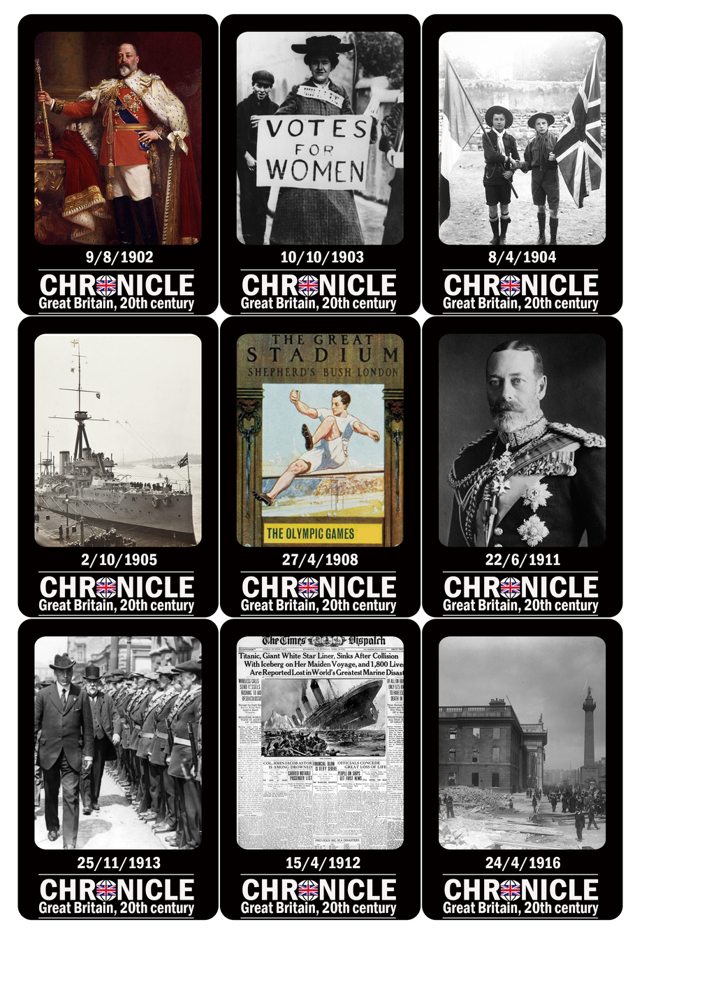 👉El juego consiste en 108 cartas a doble cara, en una de las caras se nombra el evento junto con una imagen de la época, en la otra el mismo evento pero con la fecha.